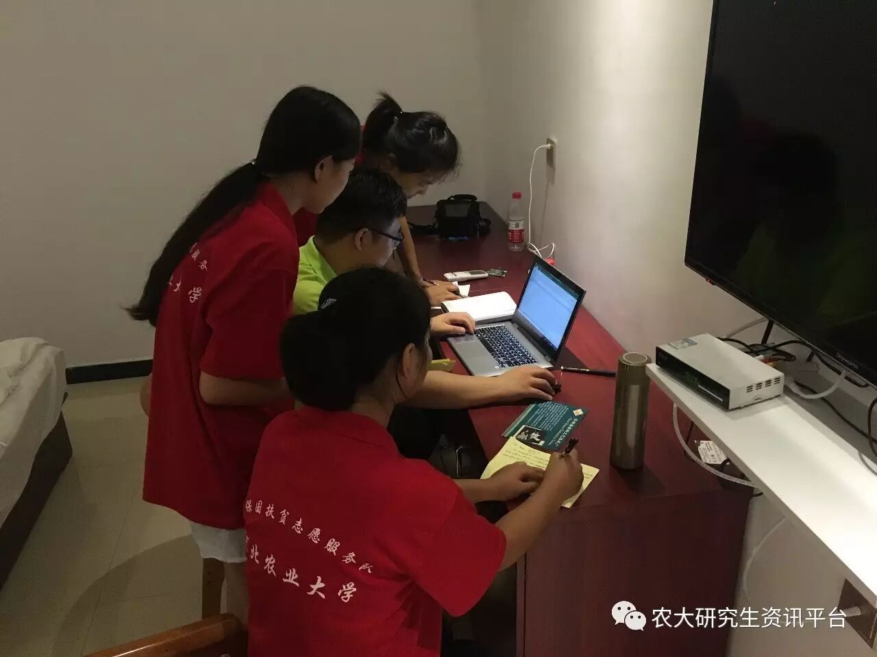 同学们利用晚间业余时间录入数据、讨论